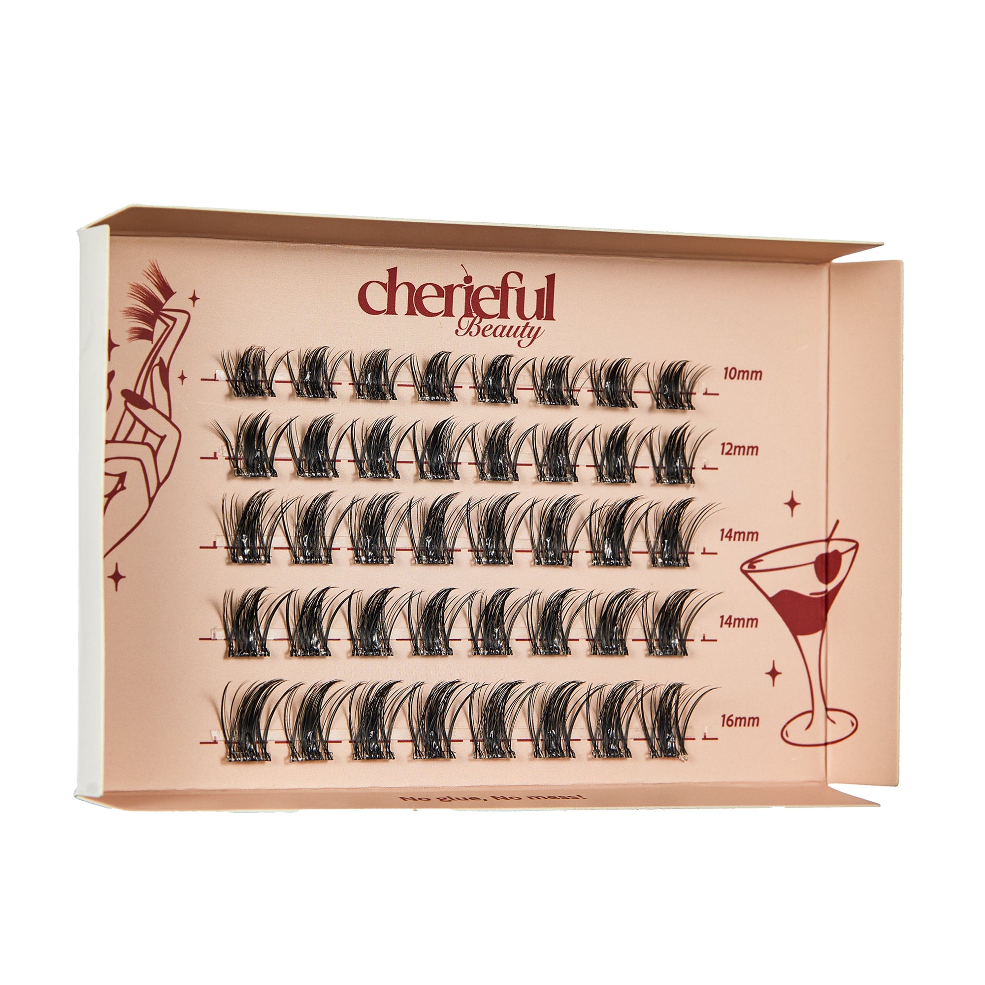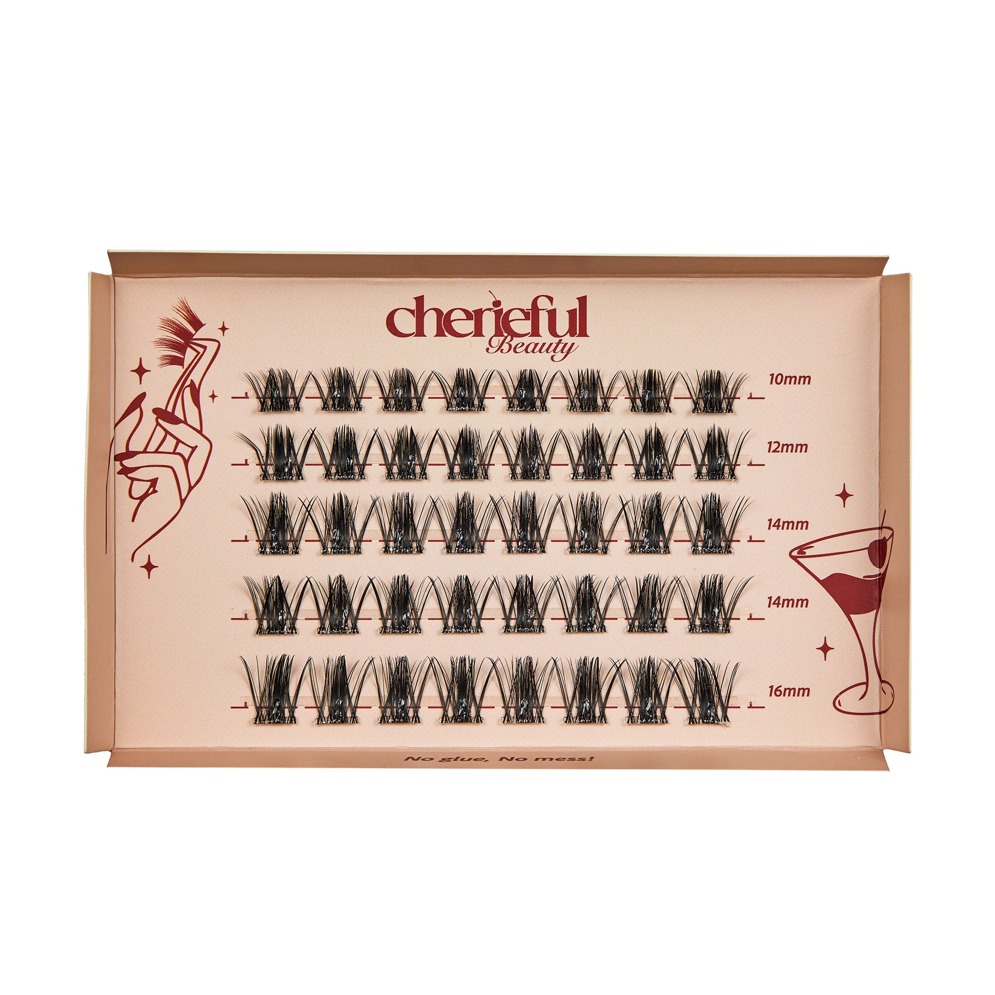 40x pre-glued lash clusters from our Chéri Snap N’ Spark!™ collection — thoughtfully arranged in four soft, versatile lengths to create your ideal lash story: